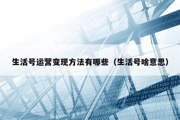 生活号运营变现方法有哪些(生活号啥意思)